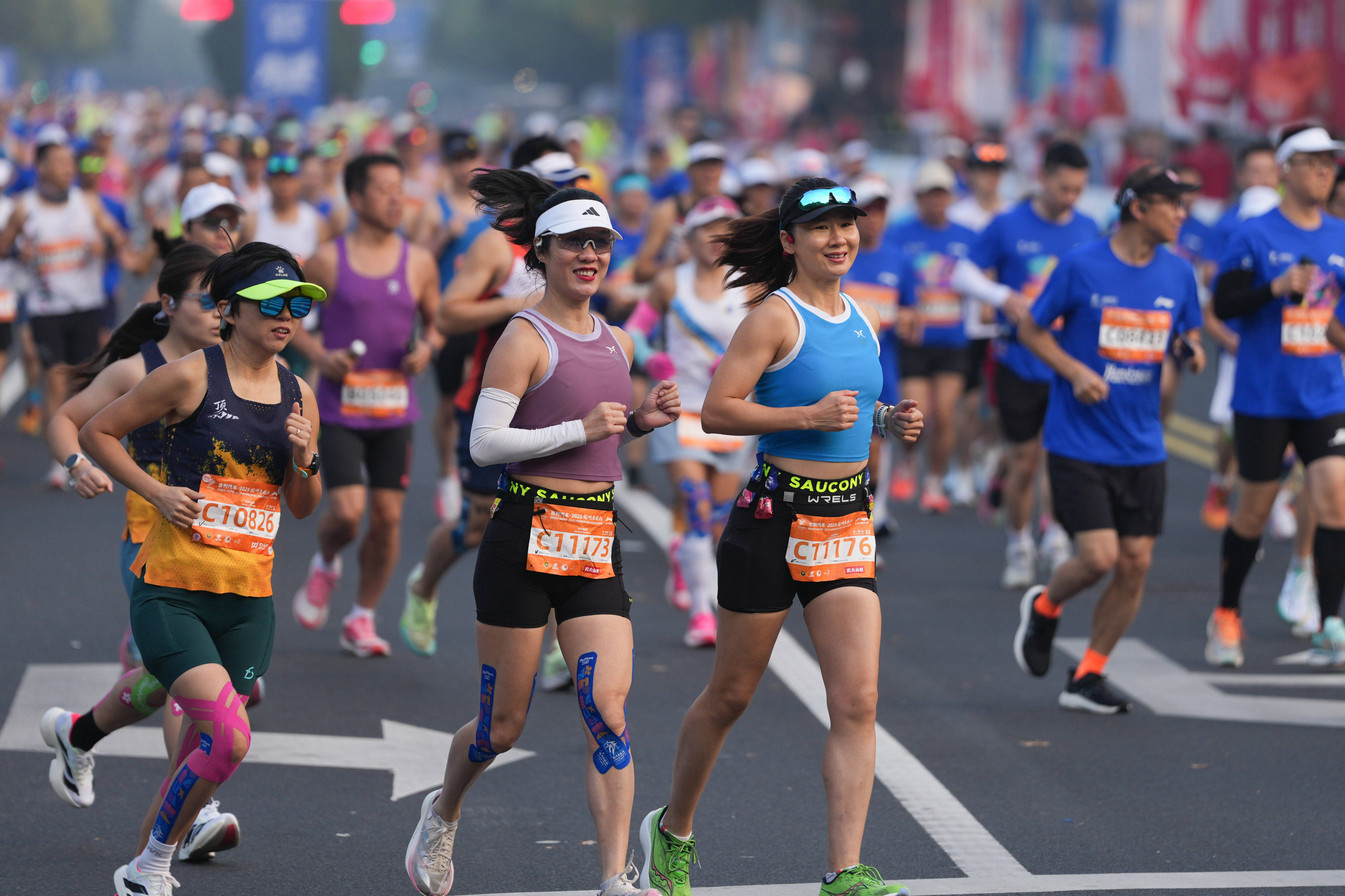 当日,2025杭州马拉松赛在黄龙体育中心鸣枪开跑。