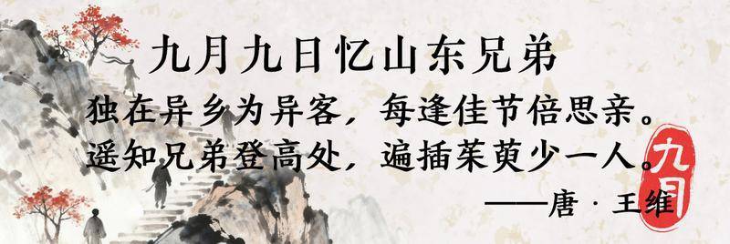 农历九月初九是传统节日重阳节。古人认为,“九”为阳数之极,此时月日皆逢九,故曰“重阳”。唐代诗人王维用《九月九日忆山东兄弟》描绘此时心境:“独在异乡为异客,每逢佳节倍思亲。遥知兄弟登高处,遍插茱萸少一人。”重阳节自古就有佩戴茱萸、饮菊花酒、登高祈福等习俗,如今更是一个传承尊老敬老文化的节日。