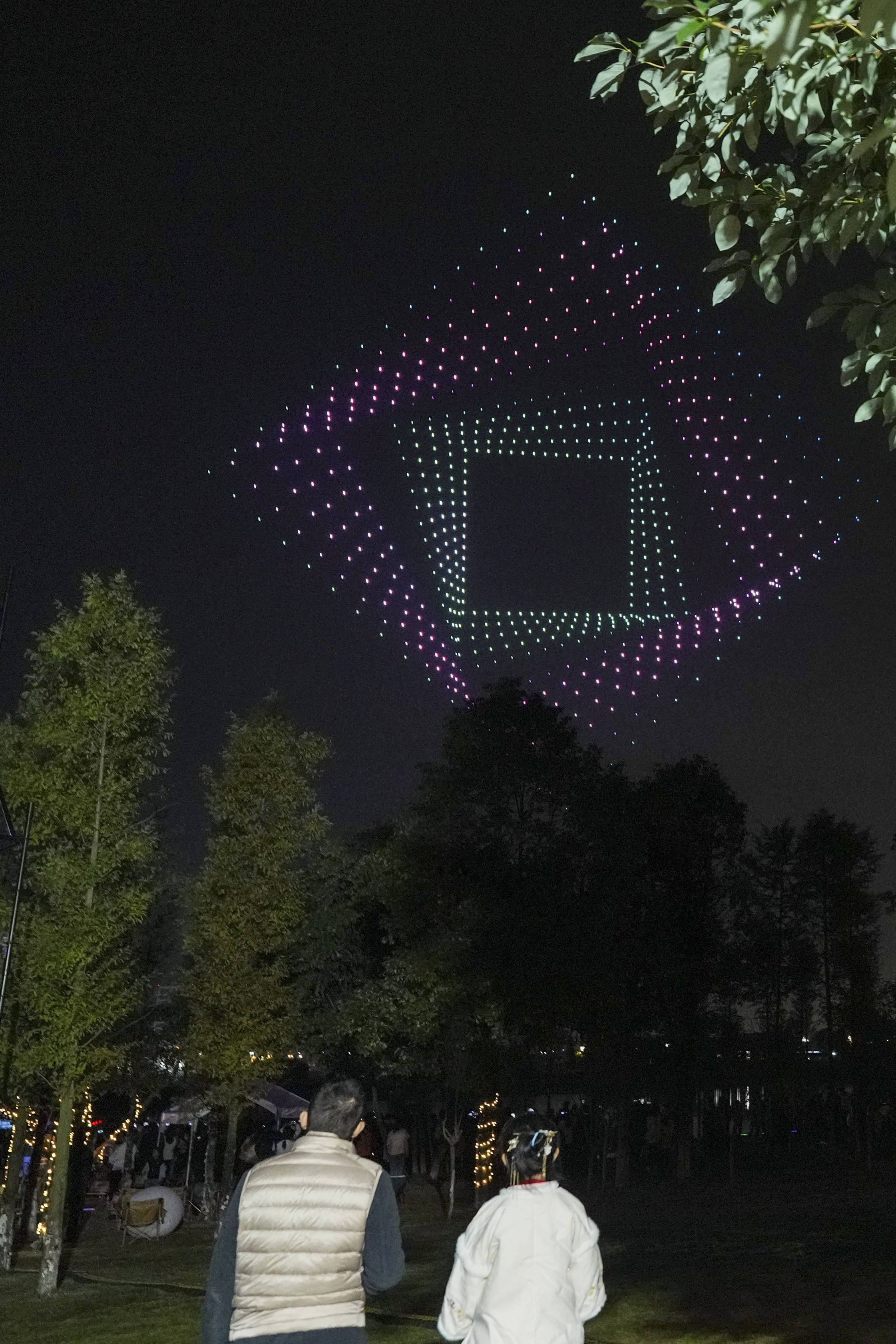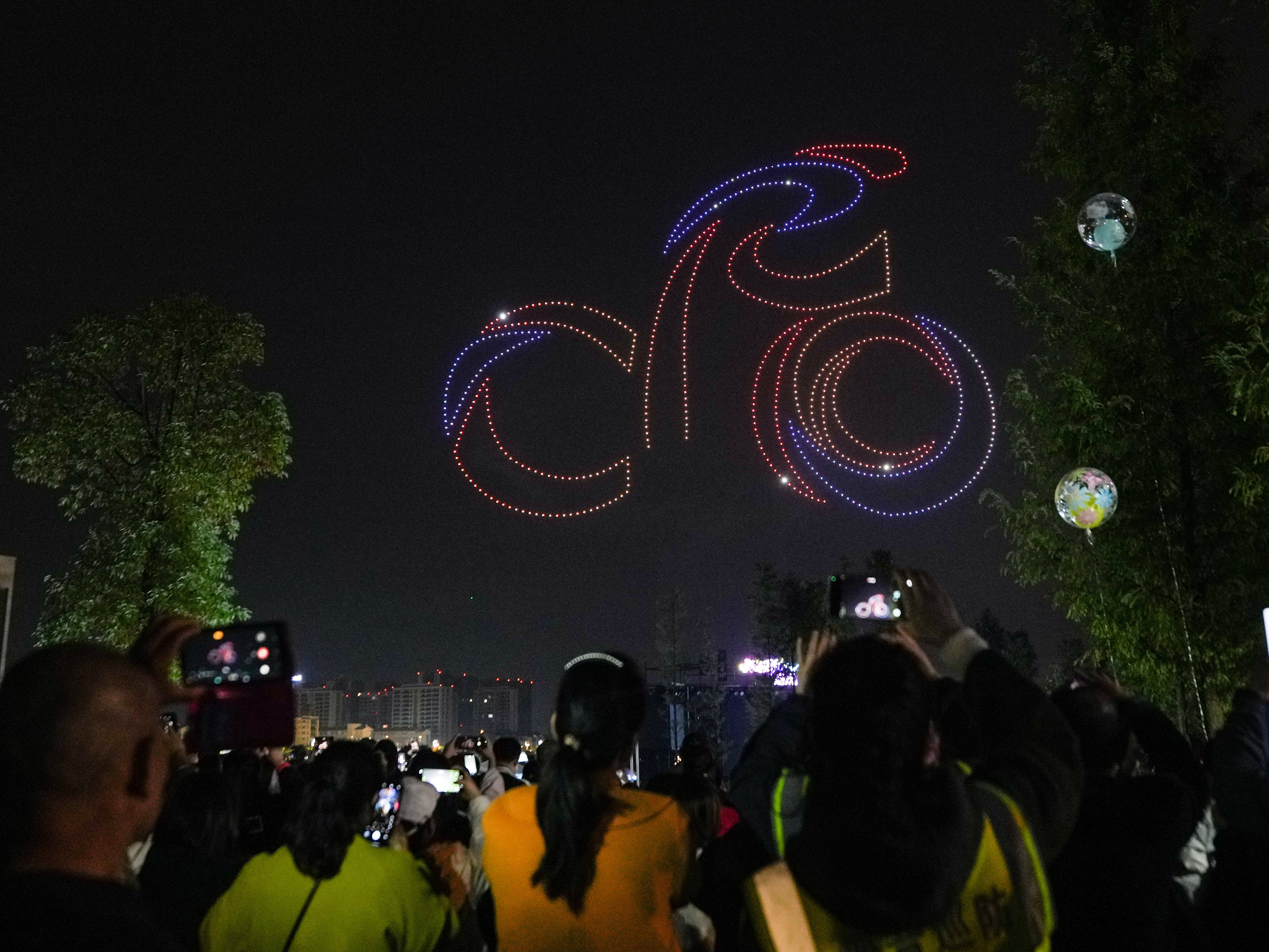 11月1日,在四川省眉山市彭山区,游客在观看无人机表演。 新华社记者 王曦 摄