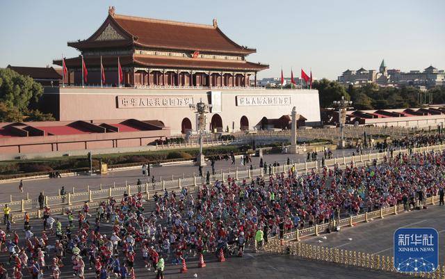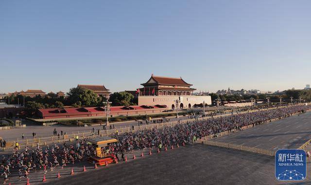 ↑ 参赛选手在比赛中经过北京天安门广场。