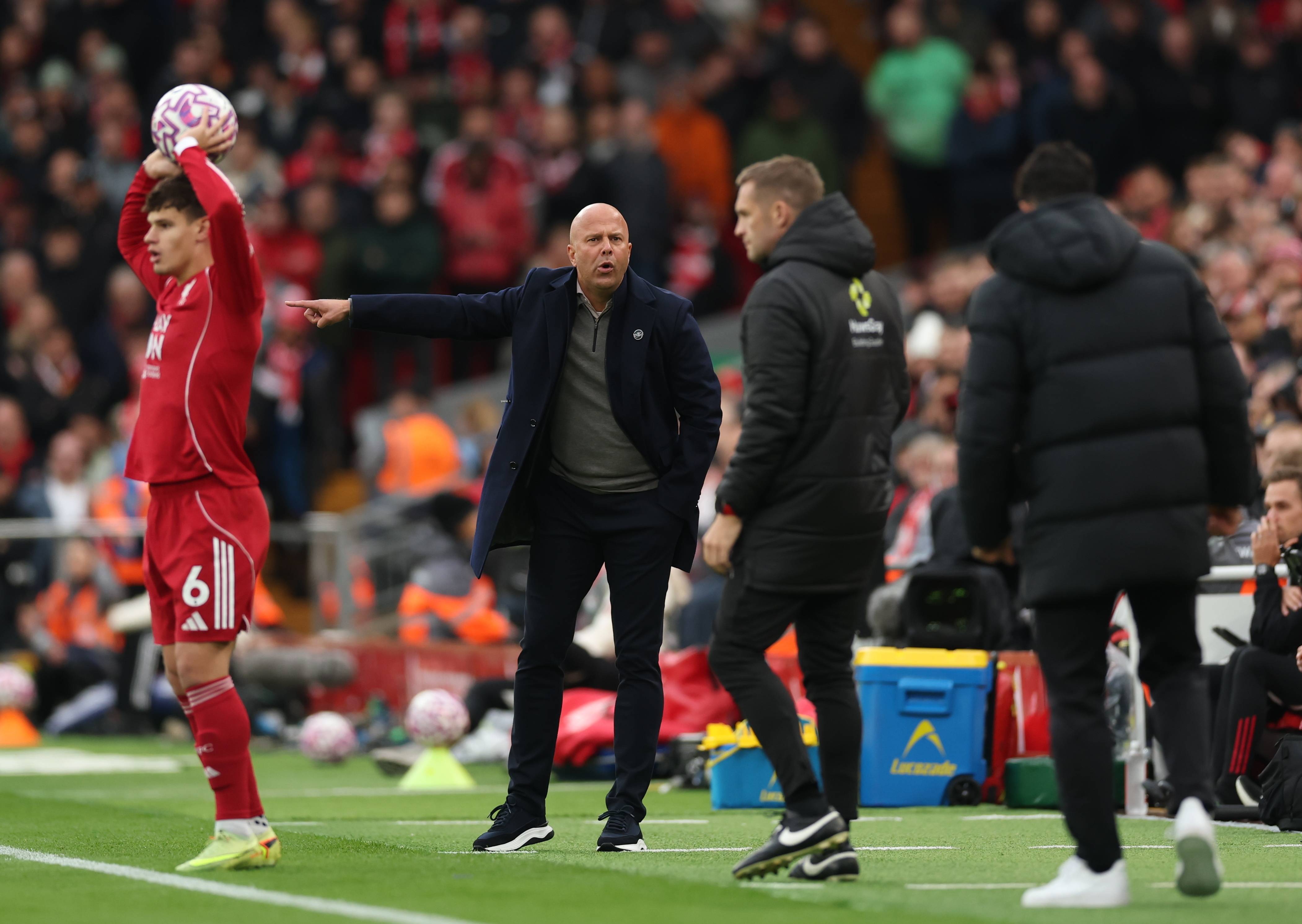 10月19日,利物浦队主帅斯洛特(中)在场边指挥。 新华社/欧新