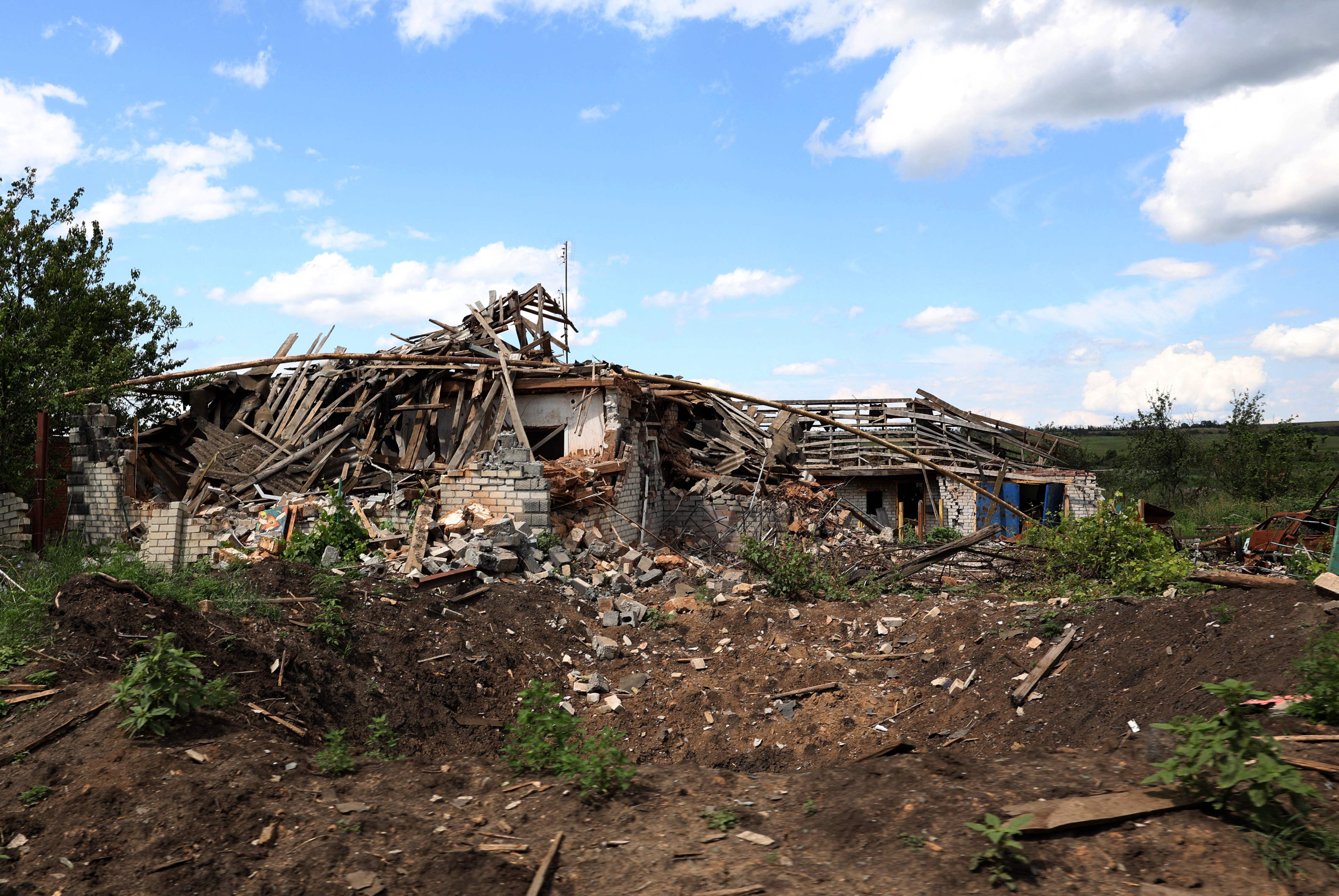 资料图片:谢韦尔斯克附近被战火破坏的村庄。法新社