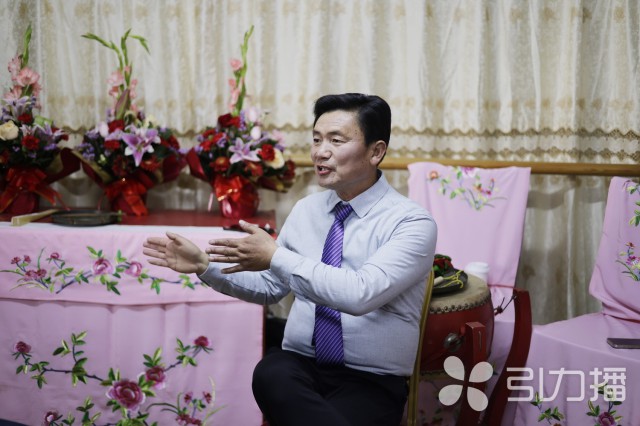 在富渔村的一间活动板房内,沈全弟脱下羽绒服,换上黄色绸缎长衫,外套一件同样质地的红色马甲,抄起铜锣,亮嗓高歌,为记者演绎赞神歌《刘猛将还乡》选段。他的身后,是三位敲锣打鼓的伴奏者。乐音起,沈全弟操起一口磁糯的吴江方言,抑扬顿挫地唱忠孝仁义。“早期的赞神歌在祭祀、庙会等场合演出,内容往往是赞颂神明,希望祈福消灾。几经演变,现在的赞神歌更侧重于表现忠孝仁义,惩恶扬善等。”沈全弟介绍。
