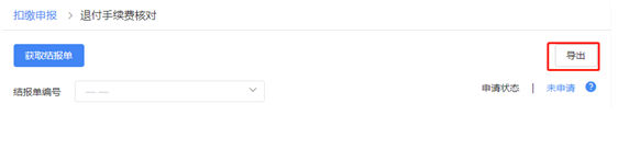 05、该菜单提供导出功能,若需要导出页面数据的,可使用【导出】按钮选择导出内容进行导出。注意:代扣代缴手续费申请表仅在还未提交退库申请时支持导出。