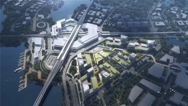 而在不远处的苏州南站施工现场,几十台塔吊、挖掘机和上百顶小黄帽正在密切协作,如同一个大型交响乐团,在弹奏着未来铁路枢纽发展的乐章。这里,是沪苏湖铁路与通苏嘉甬铁路两条高铁“十”字交汇的地方,融合高铁站房本体、地方综合配套、交通换乘场站三大核心功能的新一代站城融合枢纽综合体。苏州南站位于长三角发展的沪、苏、浙交界处,是长三角一体化发展的衔接地带,也是一体化发展示范区的门户枢纽。