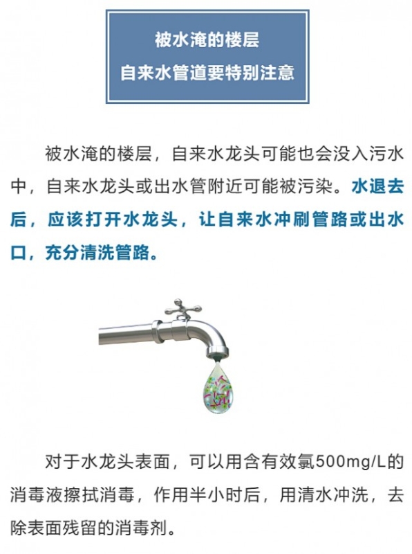 水可分为地面水和地下水两种,洪水过后往往都不同程度地受到污染。污染源一部分来自土壤,对人体无明显致病作用;一部分来自人畜粪便、垃圾、污水和工业废物,这类污染水源中有大量的微生物或化学毒物,常可对人造成危害。