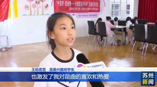 “我是怀着好奇的心态参加了此次昆曲暑托班,并且交到了许多朋友,也激发了我对昆曲的喜欢和热爱”,昆曲兴趣班学生王柏茗雪说。