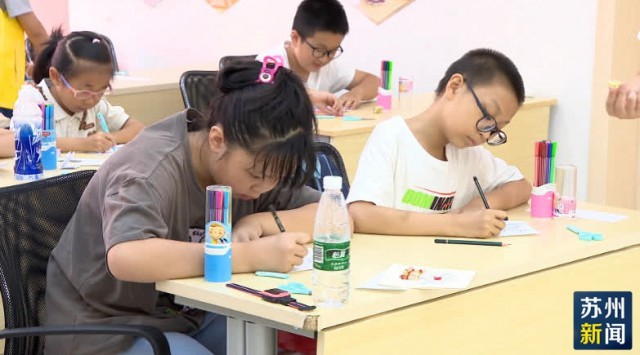 暑假期间,还有很多打工族的孩子,从外地来到苏州,跟父母团聚,暑托班让这些“小候鸟”们,度过了一个充实又安全的暑假。