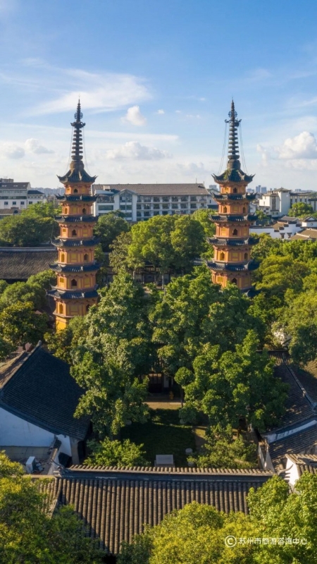 罗汉院双塔及正殿遗迹,简称“双塔”,江苏目前唯一保存的宋代建筑遗迹,是姑苏古城内清秀挺拔的“双子星”。