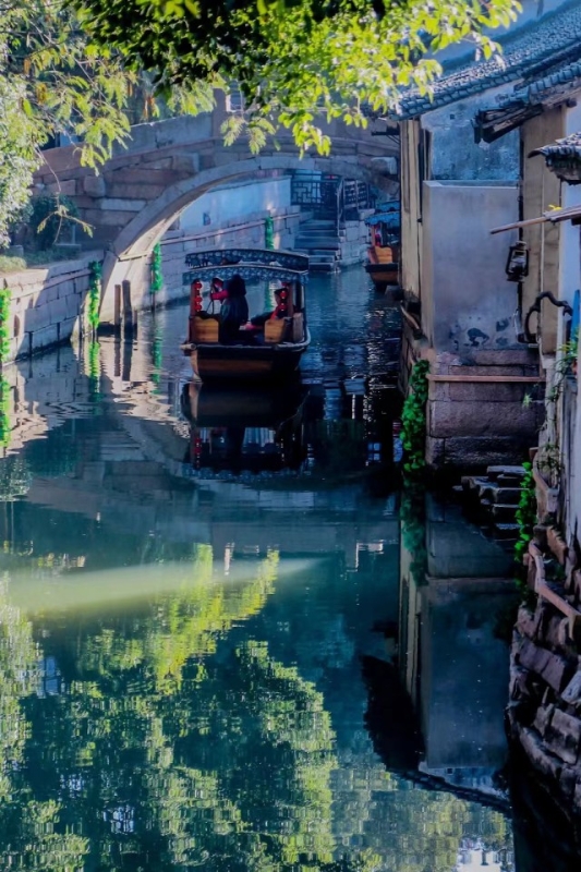 走累了,坐着手摇船,顺着平江河,悠游于姑苏古城之中,眼前绘就的一幅“君到姑苏见,人家尽枕河”的生动画面,便是姑苏的特色。