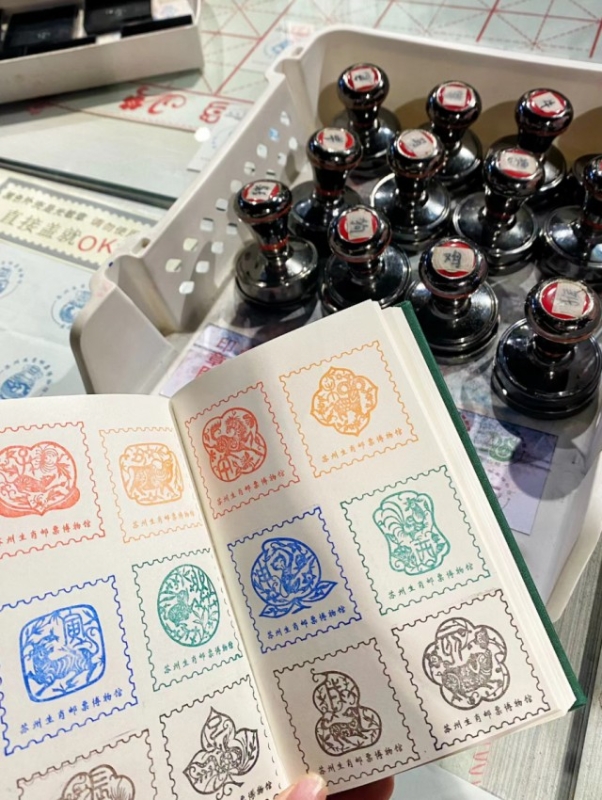 生肖邮票博物馆内也可以盖章,如意、脸谱、剪纸……个个不同。