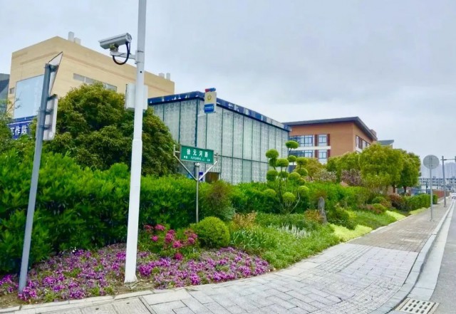 徐元河路,改造中市政部门进行适宜的微地形处理,清除场地内飞线,在靠内侧较高处种植法国冬青作为生态绿篱,遮挡沿街建筑及停车场,并通过不同色彩的植物营造出层次丰盈的自然空间,充分展现植物的群落美和自然美。