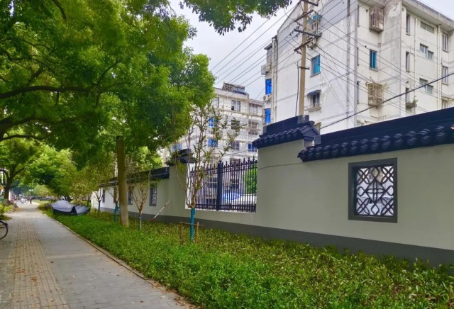 东环新村东侧围墙,通过重新布置围墙附近的地被植物,采用草皮覆盖和灌木种植的方式,使整个区域更加绿化和美观,提升居民的舒适感和生活质量。