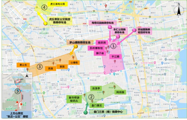盘门三景(南)停车场旅游换乘直达线路示意图