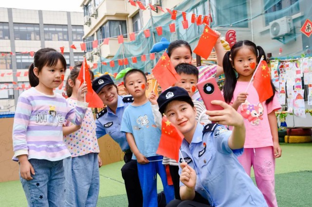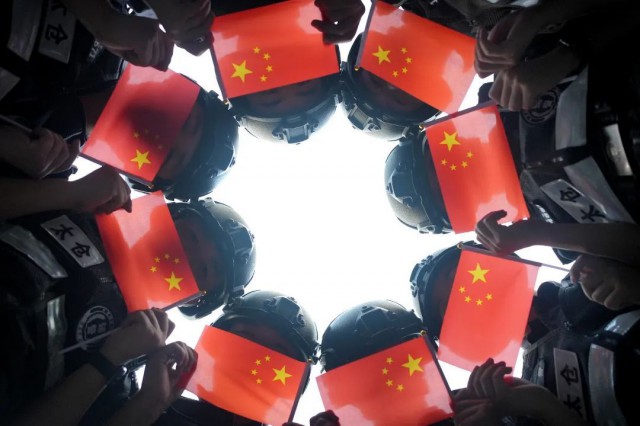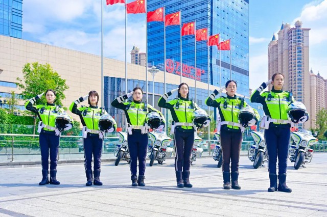 他们以最美的姿势与国旗同框,你看“警察蓝 + 中国红”真美!