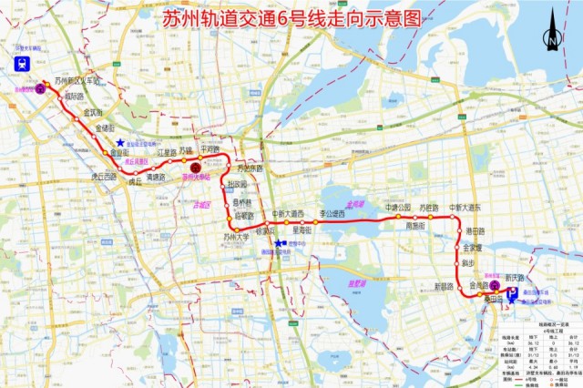 6号线全线有14座车站紧临园林,因此有着“园林线”的美称。该线路起于高新区苏州新区火车站,止于工业园区新庆路站,全长36.12公里,均为地下线,设车站31座。