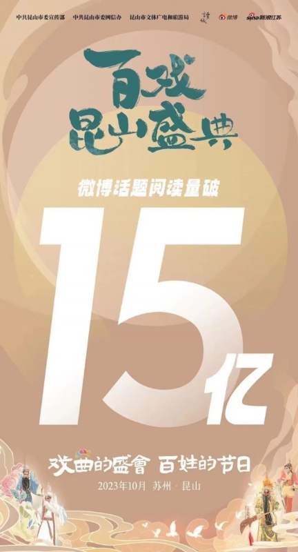 同时,百戏盛典线上展播也正火热开展中,依托国内头部网络平台,全网热度持续攀升,截至目前#百戏昆山盛典#微博话题阅读量破15亿。