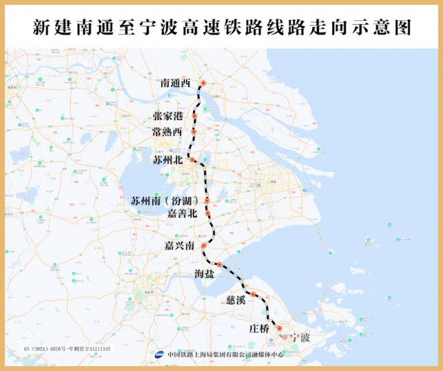 这条南北向“主动脉”高铁苏州共设4站,令人期待南通至宁波高铁线路,自盐城至南通高铁南通西站起向南经江苏省苏州市,浙江省嘉兴市、宁波市,引入宁波站,新建线路长301公里,设计时速350公里,建设工期5年。