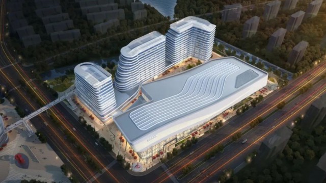 中建国际城市建设有限公司雪世界项目执行经理诸葛雄骏介绍,因为临近太湖,项目采用的设计理念是波浪形状的波光粼粼,包括铝板穿口、孔隙的大小变化、后期夜间的泛光照明效果等都采用一个波浪形状,水元素的采纳比较多,因而采用了东高西低的方式,能形成一个坡度,包括整体外立面、铝板加内部的冷库板,以及商业部分的超白玻璃,去整体展示水的一个流动形状。