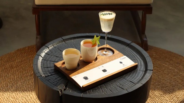 所谓“一茶三喝”,即饮一种茶,品三种风味。在公园路上的一处茶室,特色之一就是用漳平水仙、茉莉银针、野竹红茶和福鼎老白茶打造的4款“一茶三喝”套餐,包含一杯纯茶、一杯果茶和一杯加奶盖的冷泡茶。单杯风味有创意,整体也不违和。“‘一茶三喝’是传统与新潮元素的碰撞,所以我们既考虑到了每一杯的口感层次,也尽力保证组合风味的和谐。”店铺负责人说。