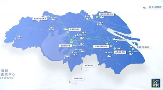 昨天,苏州空中快线高新广场直航中心启用,其位于苏州高新广场(狮山路28号),是苏州高新区首个空中快线枢纽点。直航中心候机厅在一楼大堂西大厅设立,楼顶停机坪作为直航中心起降点,若尔航空、东融公司、捷德航空三家首批运营企业获颁启航钥匙,中心已开通,苏州至苏南硕放国际机场的航线(约12分钟)。未来计划开通至上海虹桥机场、浦东机场的直升机联程接驳航线,通过空中快速飞行及机场专属通道,通行效率相较于地面通勤、机场普通通道提高4至5倍。