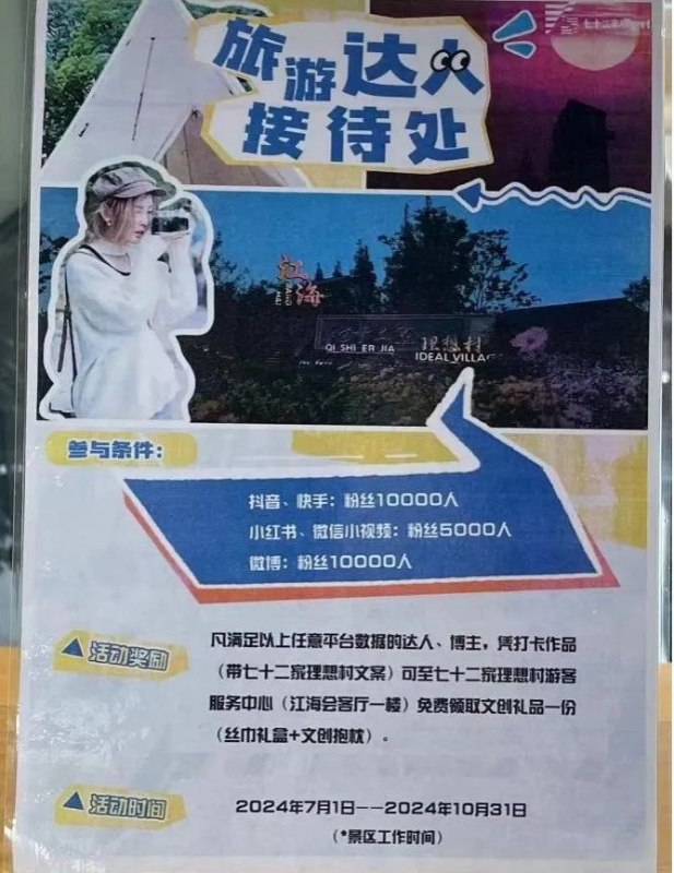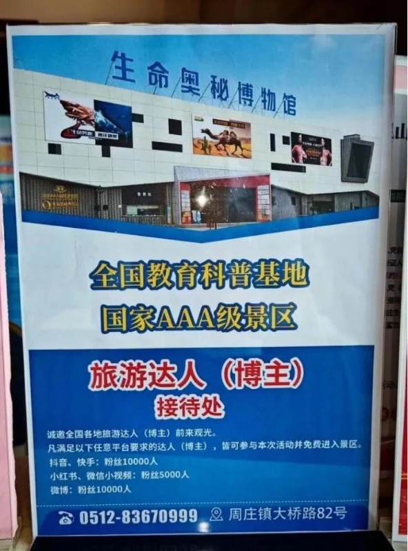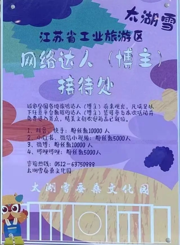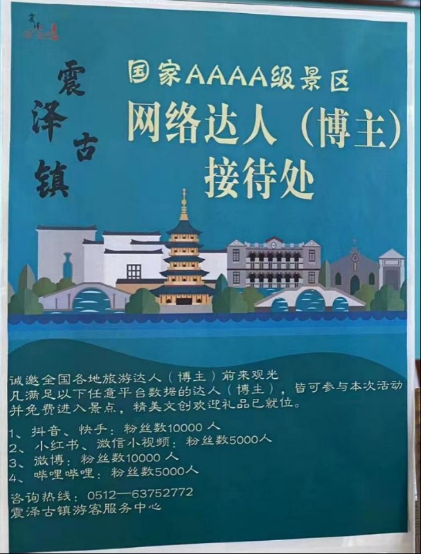 截至目前,已有周庄古镇、同里古镇、光福景区、旺山景区、陆巷古村、木渎古镇、甪直古镇、黎里古镇、锦溪古镇、震泽古镇、千灯古镇、沙溪古镇、浏河古镇、同里国家湿地公园、玫瑰庄园、凤凰山景区、生命奥秘博物馆、太湖雪蚕桑文化园开通旅游达人(博主)接待点,凡是在抖音、小红书、快手等社交平台达到一定粉丝量的旅游达人(博主),均可免费进入上述景区景点参观游览。