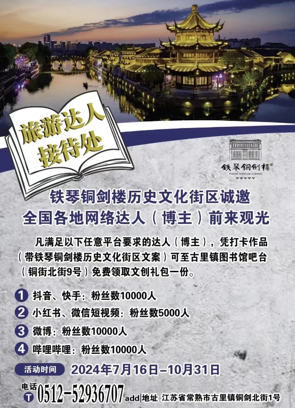 旅游达人(博主)在太湖雪蚕桑文化园、甪直古镇、木渎古镇、锦溪古镇、震泽古镇、浏河古镇、七十二家理想村、铁琴铜剑楼历史文化街区等景点景区内打卡拍照并上传社交平台还可获得精美文创礼品一份。