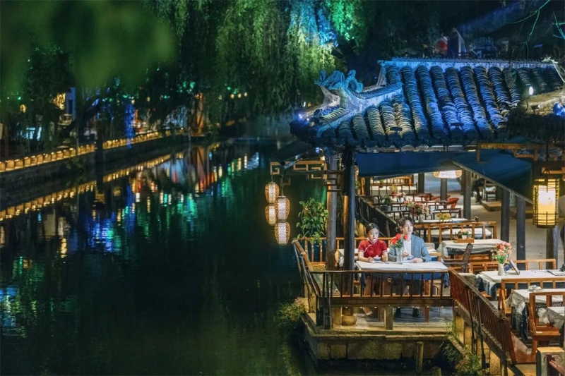 今年新开发的夜游项目《锦夜·青靛甪直》,更为古镇的夜晚增添了一抹流光溢彩,“三秀六景”的梦幻演艺让人如入画境,尽享集视觉、听觉、味觉于一体的沉浸式游园体验。