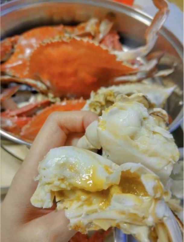 最后,捏蟹的中腿,蟹腿越硬的,就越熟越肥美。