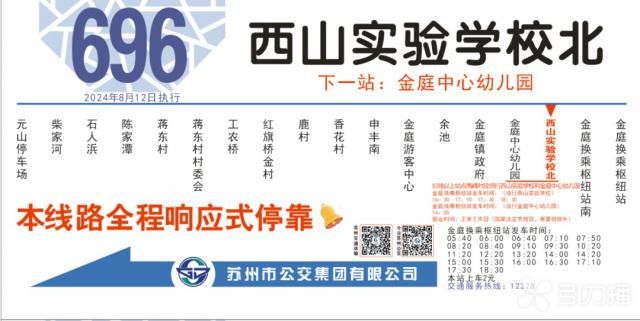 624、696路作为吴中区全线响应式公交,公交车辆经过该线路所有站点时,车厢内有乘客需下车或者站点有乘客候车时,车辆接受响应、进站停靠;车厢内若无乘客下车且站点也无乘客候车时,车辆不停靠,低速安全通过该站点。