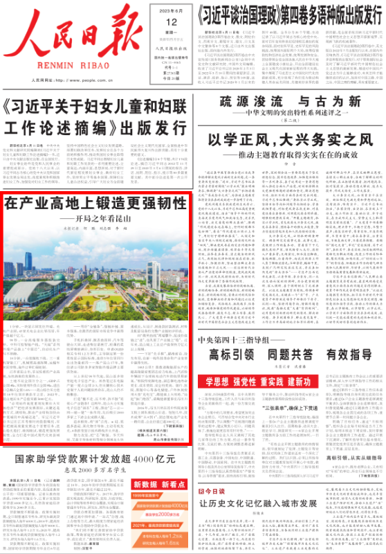 厉害了!6月12日《人民日报》用头版+一个整版的大篇幅关注报道点赞昆山,在产业高地上锻造更强韧性 抢抓机遇再出发,快来看。 在产业高地上 ...