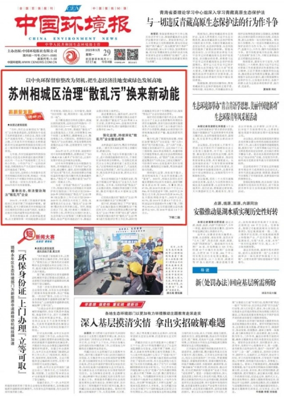 5月29日,《中国环境报》头版头条聚焦,以中央环保督察整改为契机,把生态经济洼地变成绿色发展高地,苏州相城区治理“散乱污”换来 ...