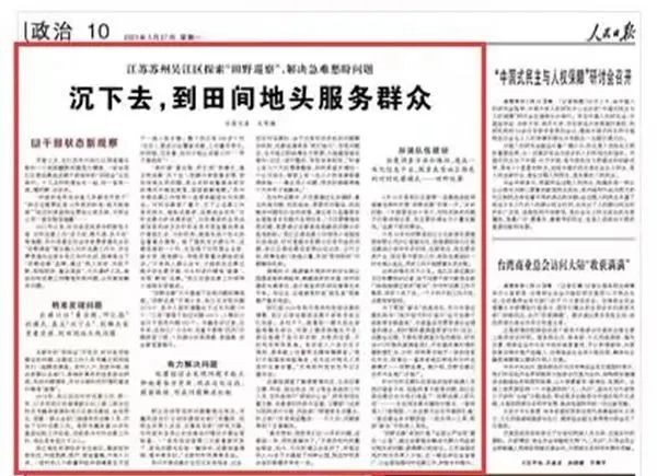 人民日报关注吴江:沉下去,到田间地头服务群众