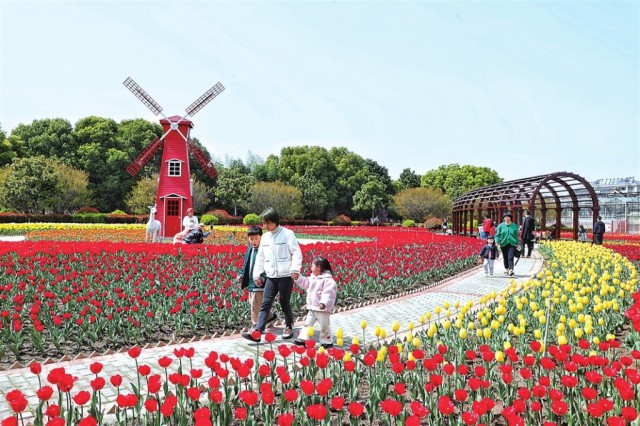 昨日,张家港市金港街道长江村,40余种120万株郁金香盛开,铺展出五彩缤纷的绚丽花海,盛开的郁金香吸引市民和游客前来观赏,感受满园的美丽春 ...