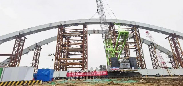 尹山大桥改扩建工程主体钢箱梁拱肋顺利合龙