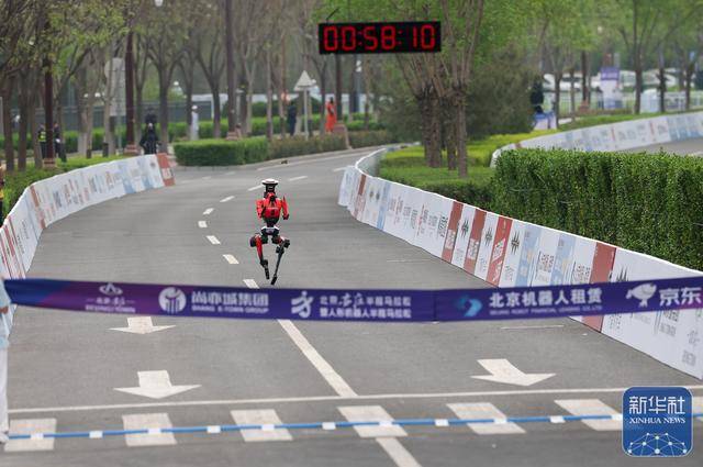 4月19日,齐天大圣队自主人形机器人选手闪电获得2026北京亦庄人形机器人半程马拉松冠军。