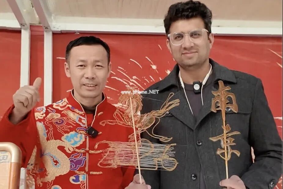 在张阳的指导下,法赫德小心翼翼地尝试绘制自己的第一幅糖画:一匹奔马,旁边加上“2026”的字样。“上手快,手还稳,我看他快把我饭碗抢走喽!”张阳笑着打趣。咬上一口自己做的糖画,嘎嘣脆响,糖香在舌尖融化,留下满嘴的香甜。