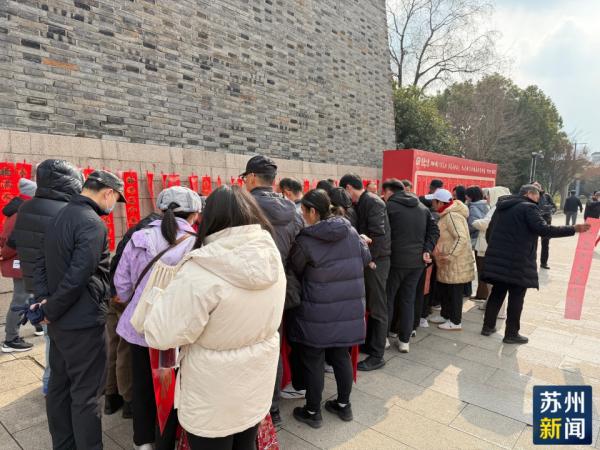 苏州城墙挂春联活动已连续举办九年。除了相门古城墙外,阊门、胥门、盘门、平门、娄门、齐门、金门、蛇门也一并挂上了巨幅新春楹联,古老的城墙之上,崭新的红联与斑驳的砖石交相辉映、相得益彰,散发出浓浓的文化年味。在相门景区城墙遗址广场,书法家现场挥笔,给市民游客送上一副副散发着墨香的春联。