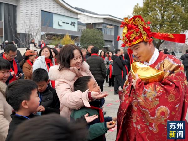 这副悬挂在相门城墙景区的春联,上联为“马背驮春,直入江南,梅花绽放东吴韵”,下联为“匠心铸福,遍贻天下,世界醉看中国年”,融合了江南风情与国际视野,既勾勒出东吴新春盛景,又彰显中华传统文化走向世界的从容自信与恢宏气度。