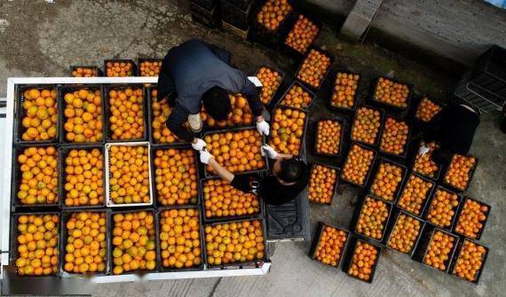 ↑2021年12月9日,在贵州省丹寨县排调镇方胜村椪柑种植基地,村民将椪柑装车运送市场。CICPHOTO/杨武魁 摄